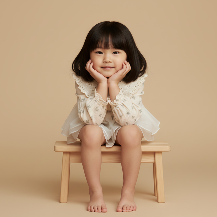 Une barboteuse raffinée au style vintage, sublimée par un col brodé et une sur-jupe fluide. Elle allie charme ancien et confort moderne, parfaite pour les moments inoubliables.