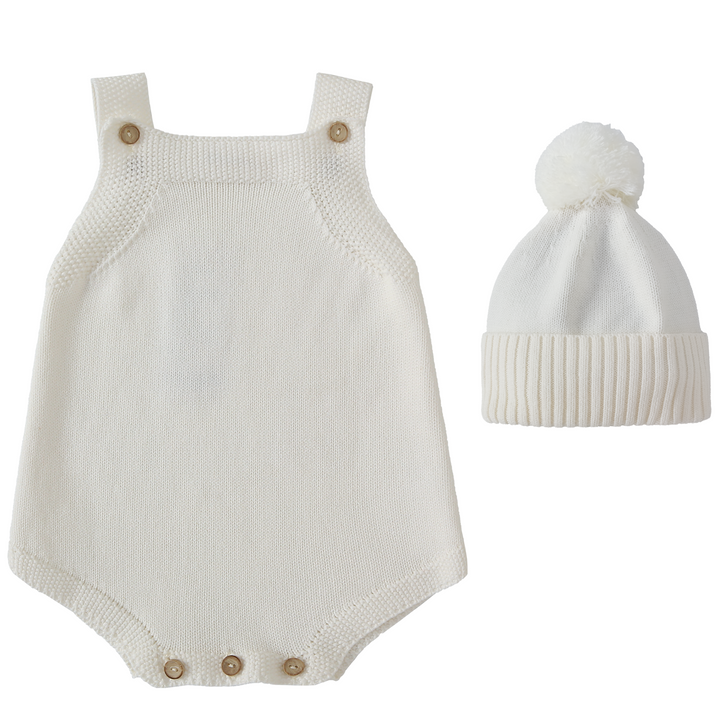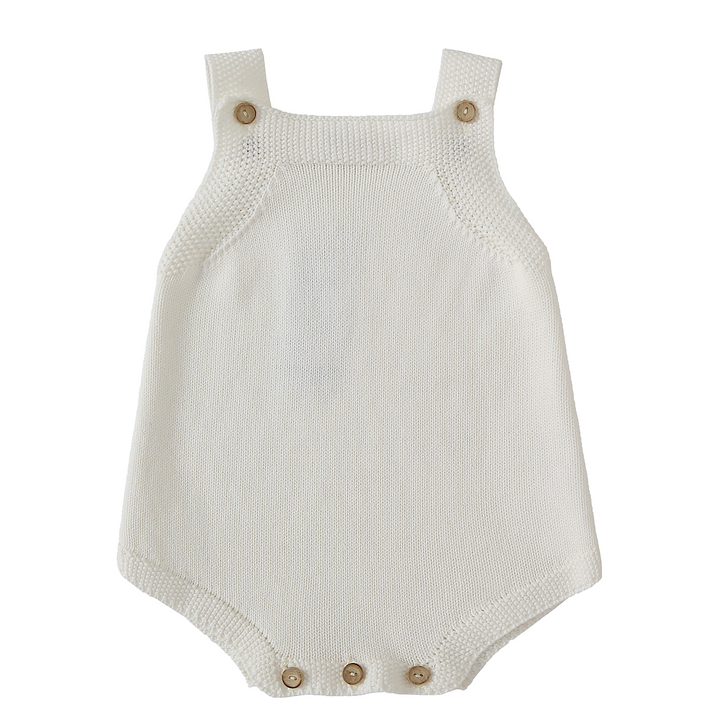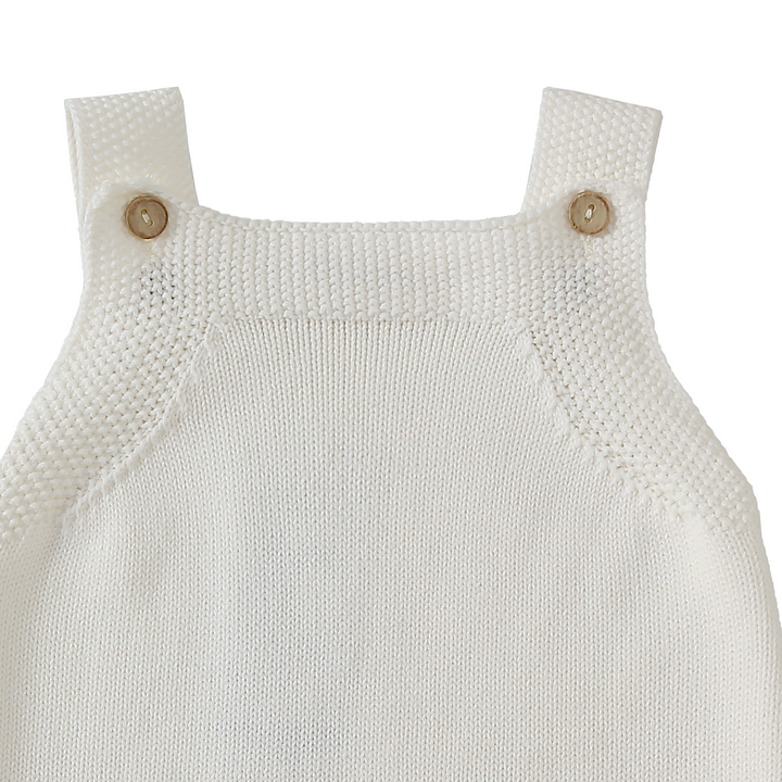 Un essentiel raffiné et intemporel : cette barboteuse tricotée écrue séduit par sa simplicité et sa douceur. Avec ses bretelles boutonnées et ses finitions soignées, elle devient un basique élégant de la garde-robe de bébé.