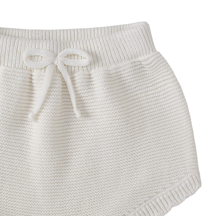 Une pièce douce et pratique : ce bloomer en tricot écru est pensé pour le confort de bébé, tout en offrant un charme rétro irrésistible. Avec son lien à la taille, il s’ajuste délicatement pour accompagner tous les mouvements.