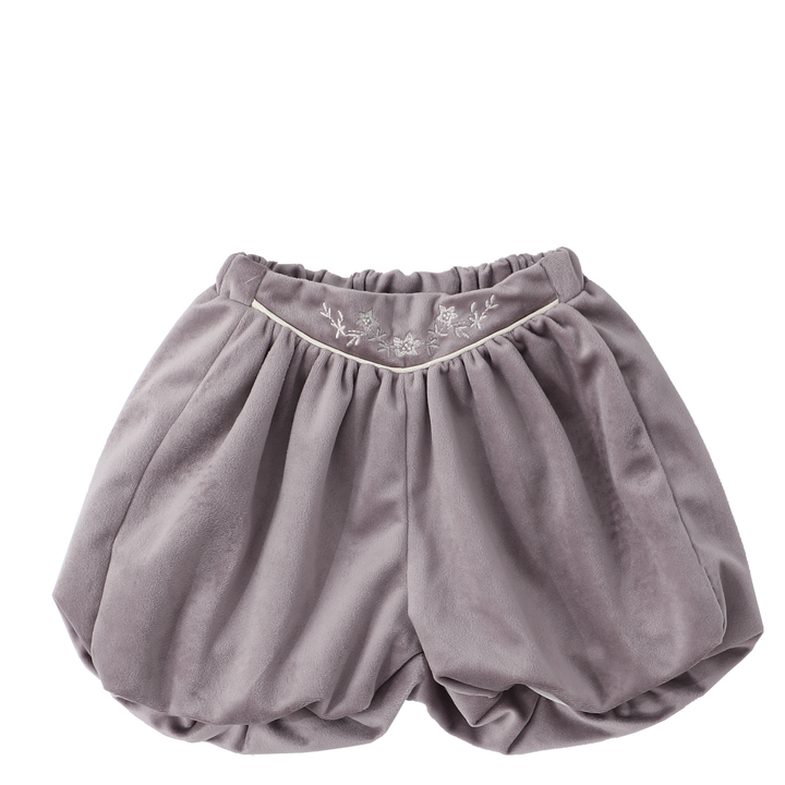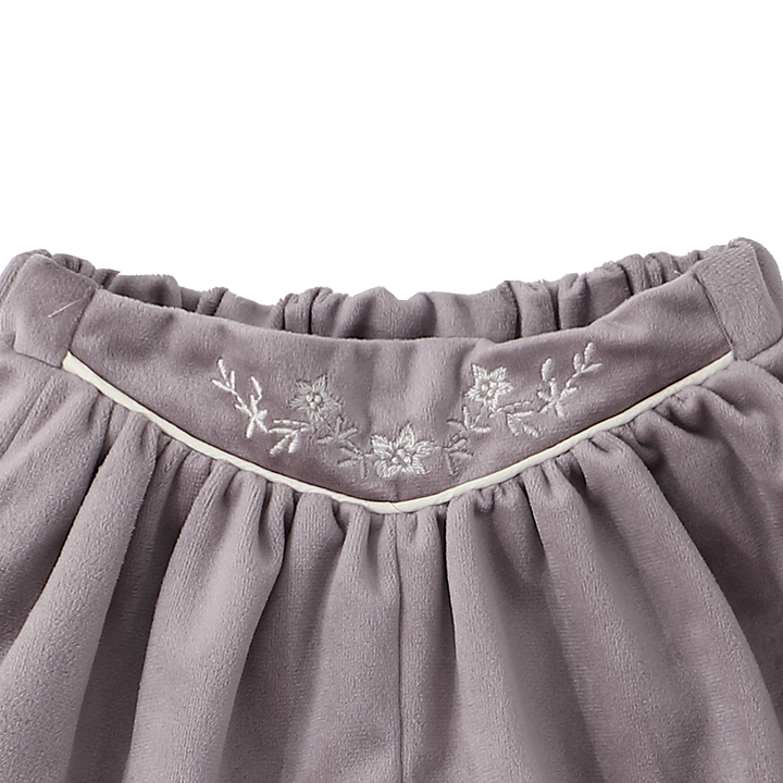 Tout en rondeur et en élégance, ce bloomer en velours prune séduit par ses plis généreux et ses broderies discrètes à la taille. Un essentiel chic et confortable pour les petites aventurières.