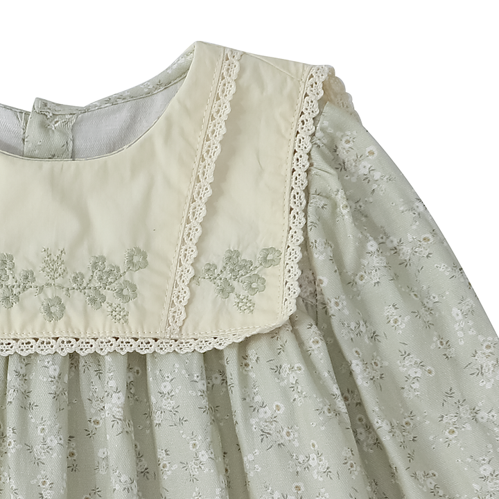 - Coloris : Vert d’eau fleuri / Crème brodé.
