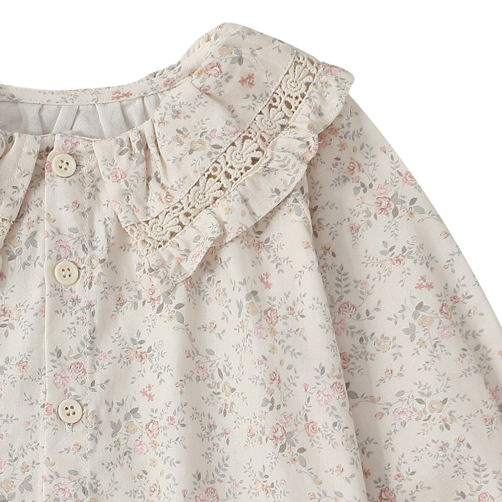- Détails : Col volant en dentelle, imprimé floral délicat.