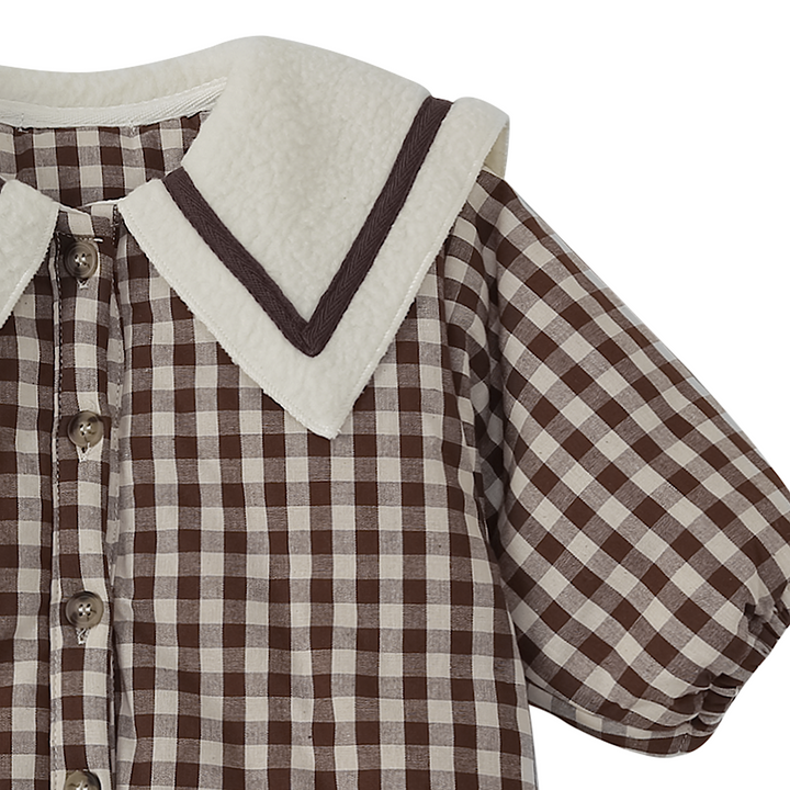 Un esprit vintage et raffiné : Combinaison en coton vichy séduit par son col marin contrasté et ses boutons sur toute la longueur. Chic et confortable, elle est parfaite pour habiller bébé avec élégance.