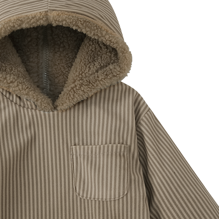 Une veste douce et pratique : sa doublure sherpa apporte chaleur et confort, tandis que ses rayures délicates donnent une allure moderne et intemporelle. Une pièce à la fois utile et élégante.