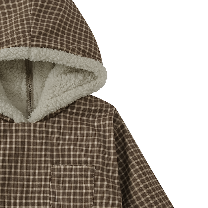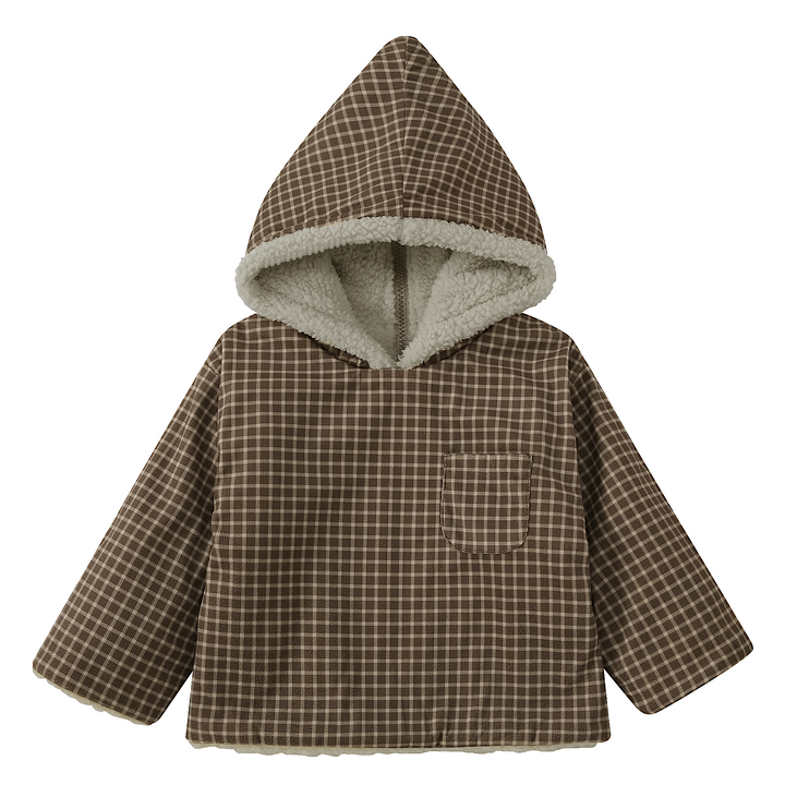 Une veste à capuche chaude et réconfortante : doublée en sherpa tout doux, elle protège bébé des frimas de l’automne. Son imprimé carreaux apporte une touche rétro irrésistible.