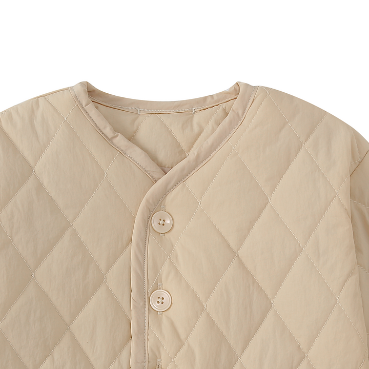 Une veste légère et élégante : son matelassage en losanges apporte douceur et confort tout en gardant bébé bien au chaud. Facile à enfiler et à assortir, elle devient un essentiel du vestiaire d’automne.