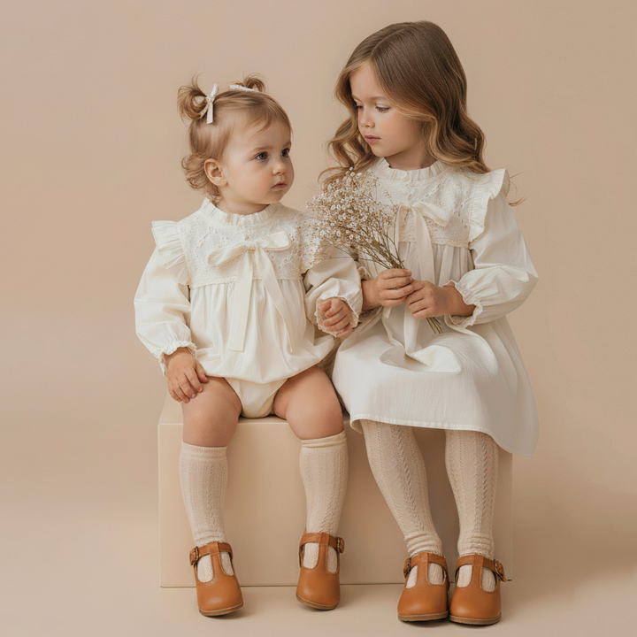 Discover the “Hélène” dress for baby, a refined and elegant piece ideal for special occasions. This dress combines a classic design with delicate details, creating a chic outfit for your little one.
